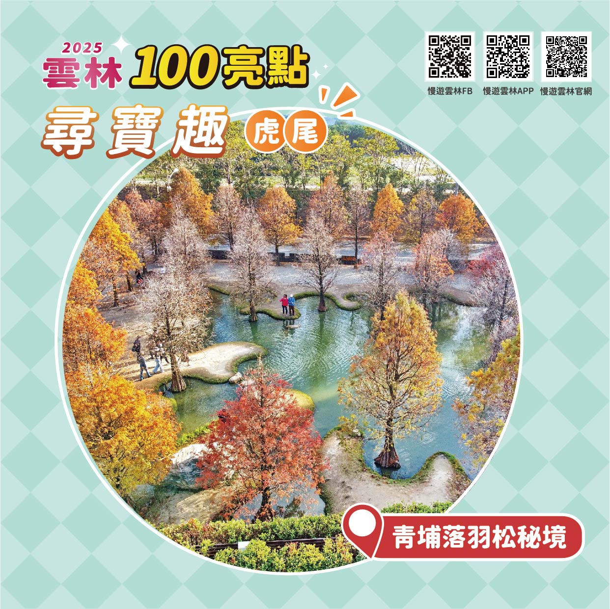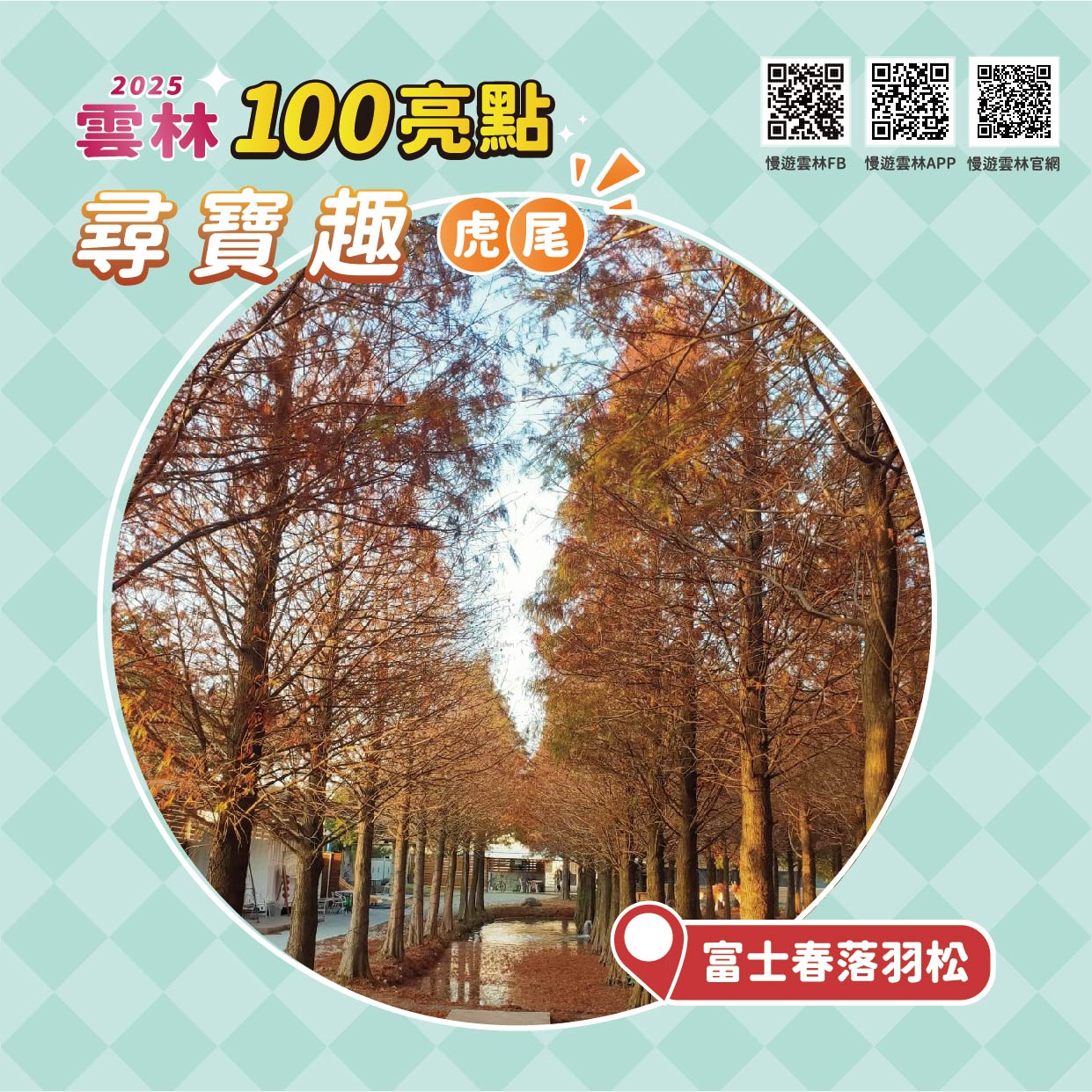 近虎尾糖廠與鐵橋的私人庭園式景點,人工土丘與水池倒映松影,冬季轉色呈現異國氛圍🍂;雖規模不大,但構圖多變、十分好拍,為近年虎尾熱門景點。