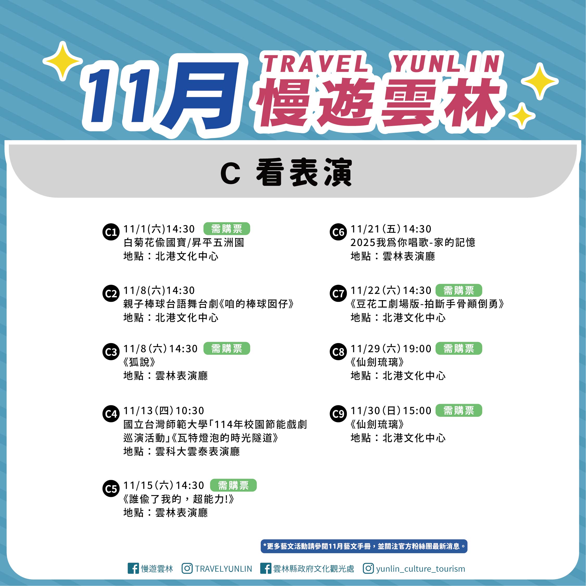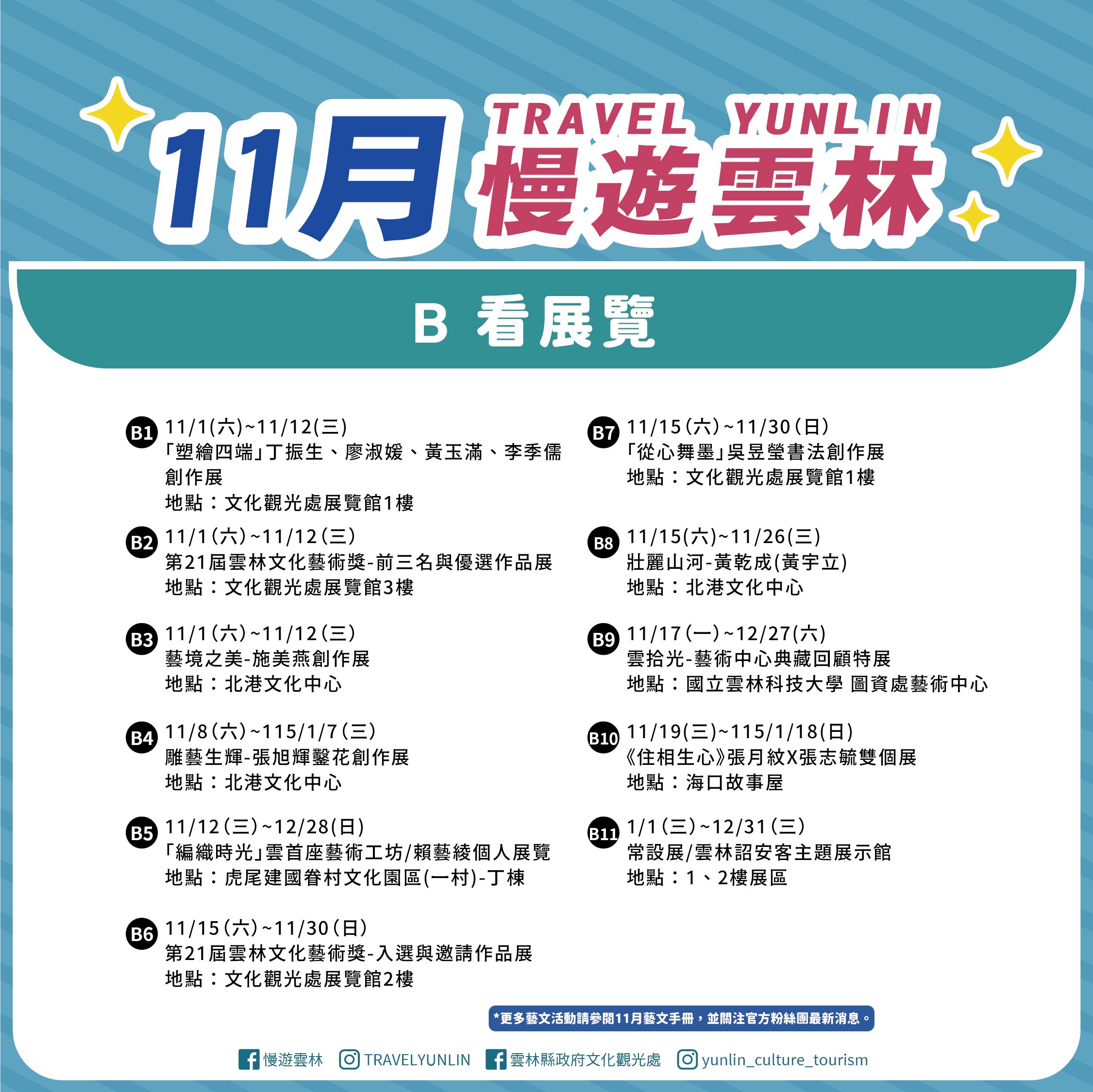 更多完整藝文活動請參閱11月份藝文手冊: https://reurl.cc/laVK1l